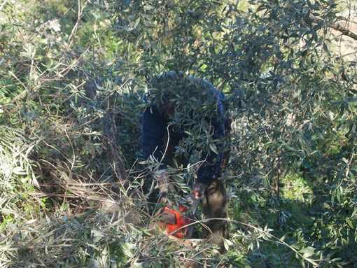 Escondidito detrás de un pequeño trastero, encontramos un gran y pesado tronco de olivo que alguien en su momento cortó.