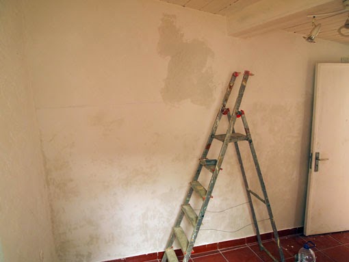 Así fue como quedó la habitación hacia el mes de Julio: la pared ya totalmente lisa, lista para recibir la pintura de pizarra.
