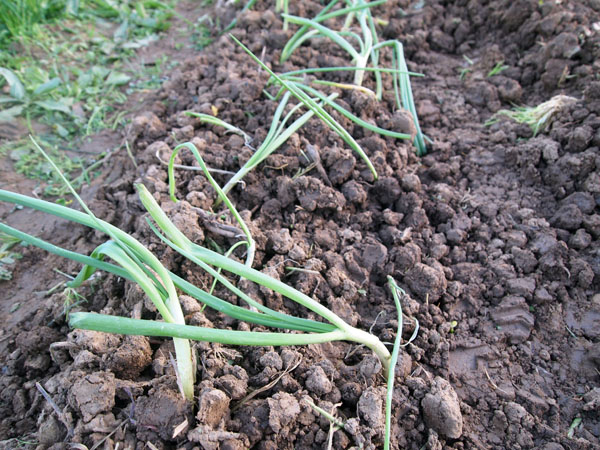 El huerto se va llenando, ahora con las cebollas